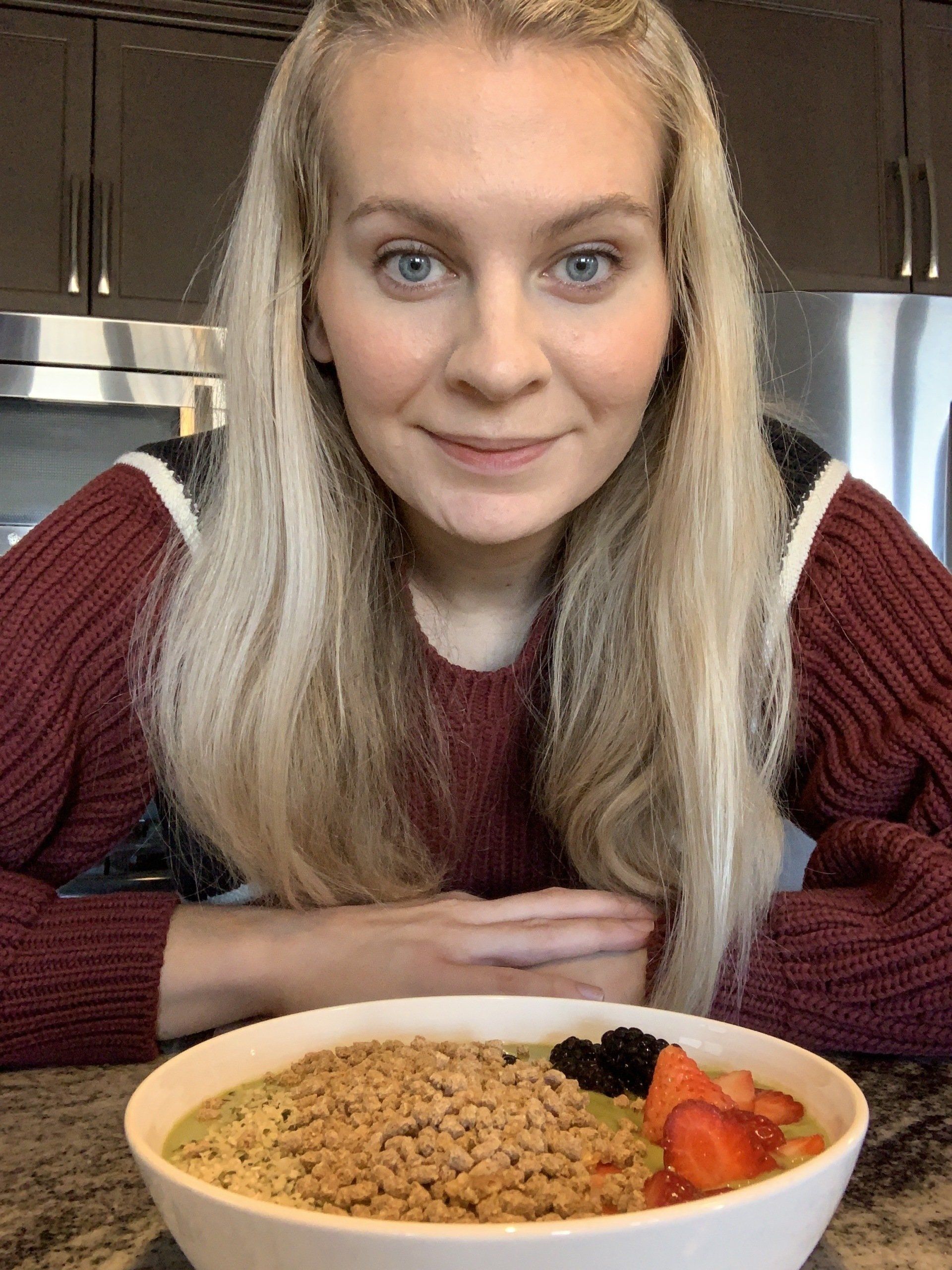 Aim for at least 30 different types of plant food each. Each plant food contains different types of fiber and beneficial phytonutrients that feed different bacteria. It’s easier than you think! This smoothie bowl alone had FOURTEEN different types of plant foods (pineapple, banana, spinach, mango, peaches, ginger, almond butter, bran buds, oats, hemp hearts, flax, chia seeds, strawberries, blackberries).